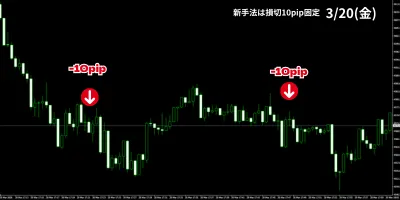 かなり幸先が悪いスタートですが、中盤の下落での売りエントリーで一気に取り返し、100pip近くでプラスに転換です。