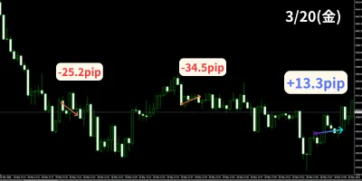 3月20日の「30秒足GOLDオートマチックFX」のトレード結果