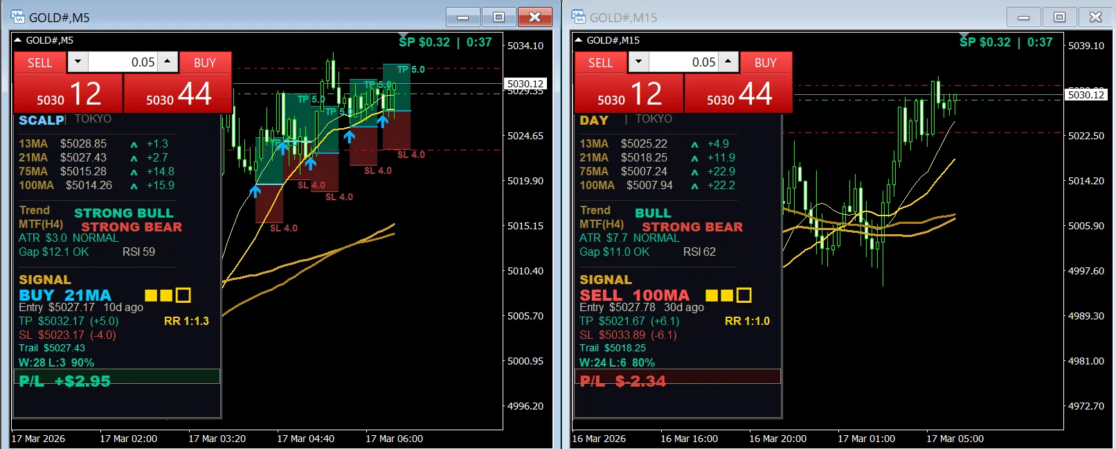 ✔ MA(13 / 21 / 75 / 100)ベース
