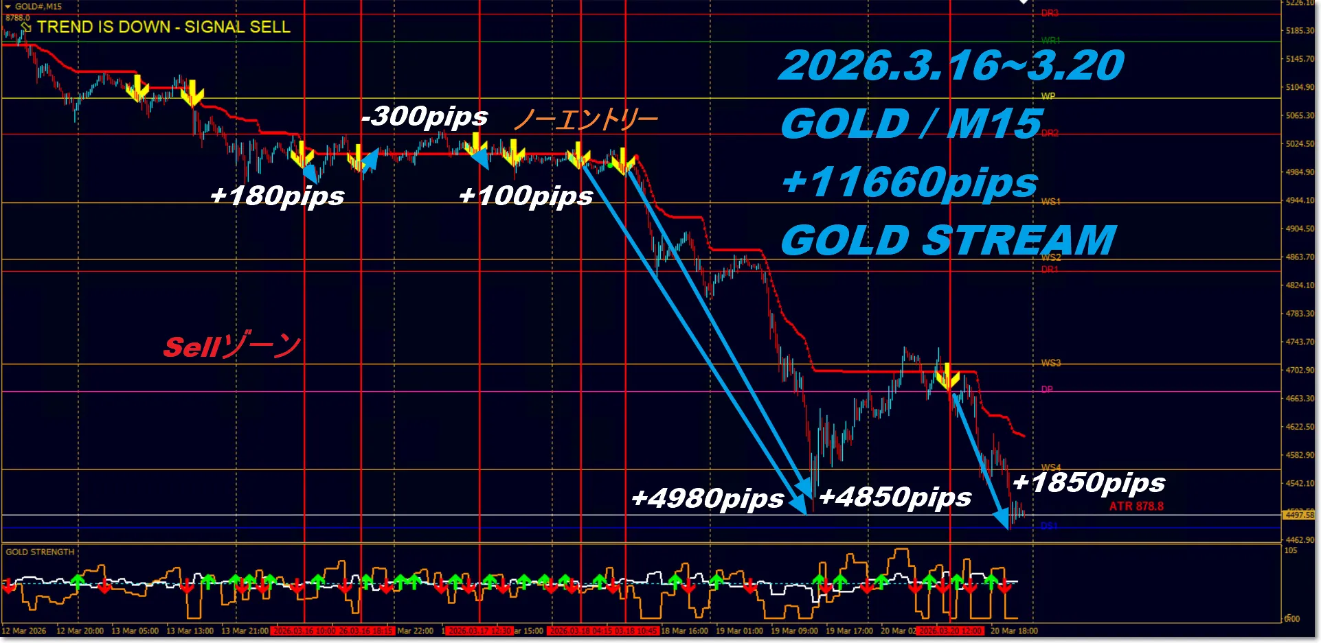 +11660pips【週次トレード検証】GOLDデイトレ特化型 「GOLD STREAM」2026.3.16~3.20