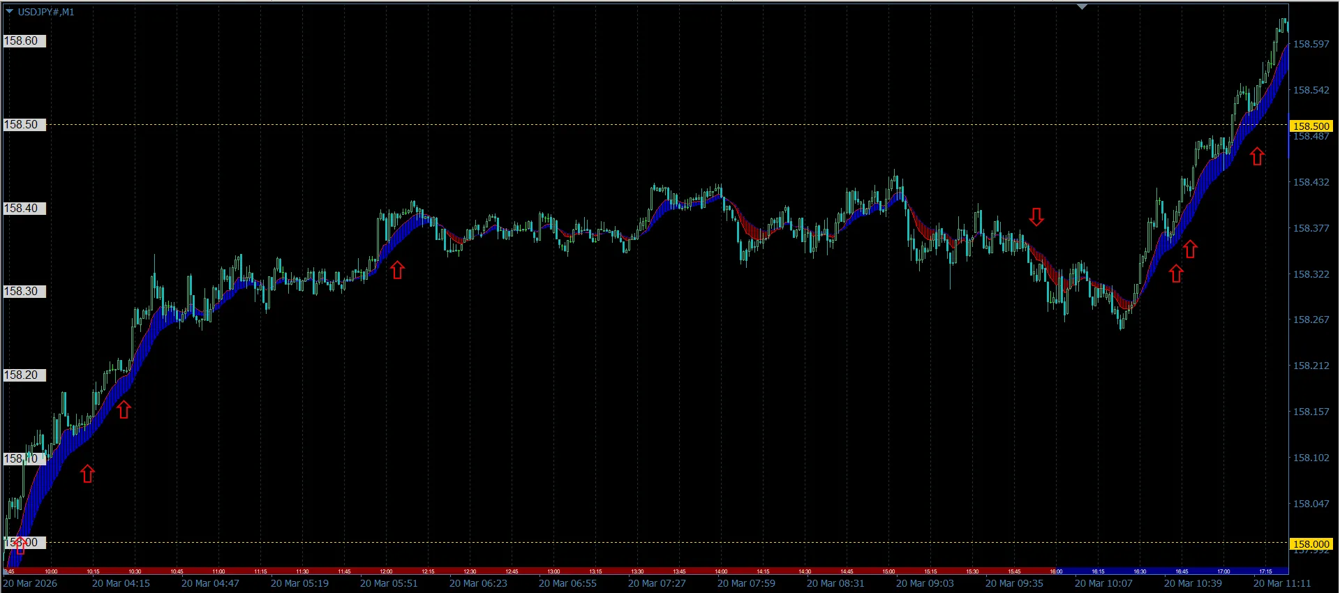 また、ボラティリティの少ない時間帯などは、矢印として提示できる場面が極端に少なかったりもします