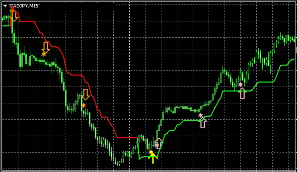 上のチャートでは、【STRCI】のサインがタイミングよく点灯しています。