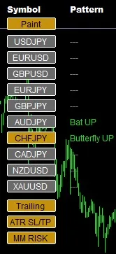 このツールの最大の特徴は、1つのチャート上に全通貨ペアと全時間軸のパターン検出状況をリスト化できる点です。