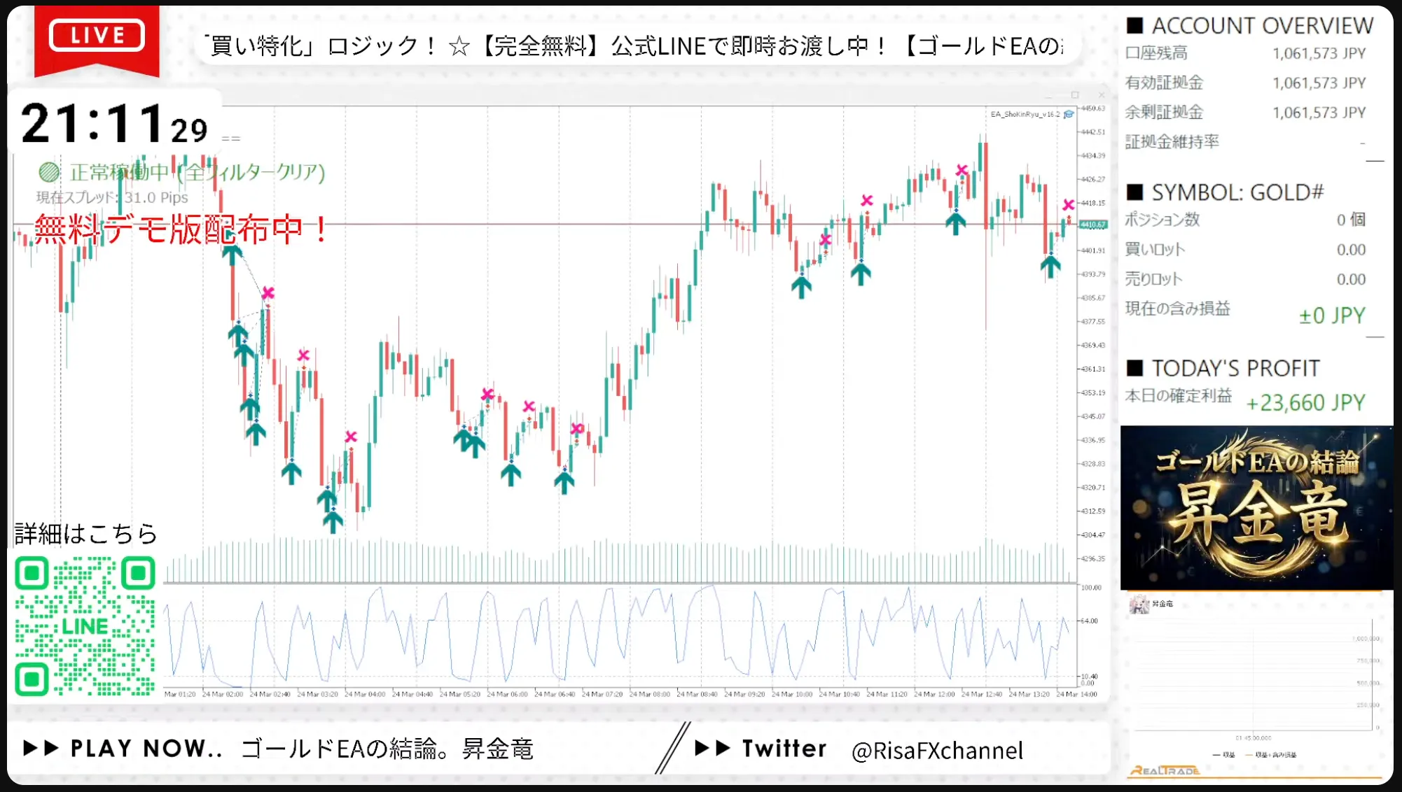 【本日の利益+23,660円】11年無敗のゴールド専用EA『昇金竜』/完全無料デモ版で今すぐあなたのMT5へ!