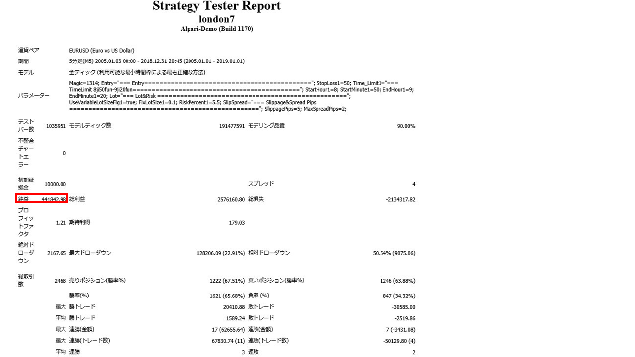 この場合の期待年利は約17.9%です。平均獲得pipsは0.1ロットなので14.5pipsとなります。