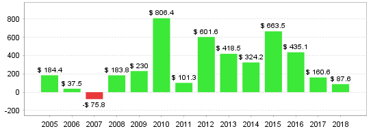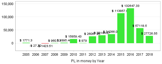 年別でみると2016が最高益、直近の2018年だけでも約300万円の利益を出す結果に。