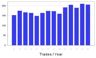 年別取引数では、直近のほうがトレード数自体は多いようです。時間帯も設定どおり。