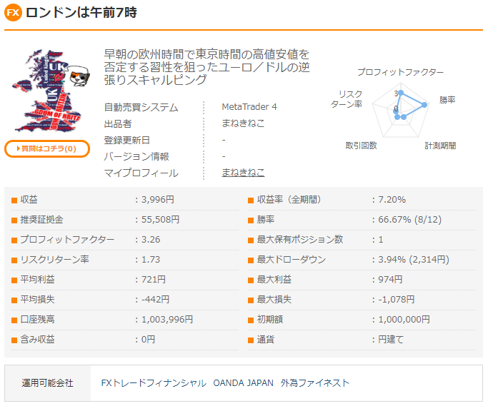 単利運用では取引数・期待年利が少し物足りませんが、安定感と少ない証拠金での資金管理のしやすさがメリットになるので他のEAとのポートフォリオを組んで使いたいところです。