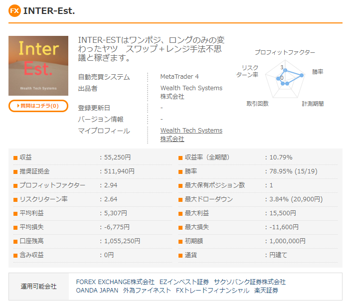 トレードとスワップの2刀流で稼ぐ一風変わったEA「INTER-Est.」