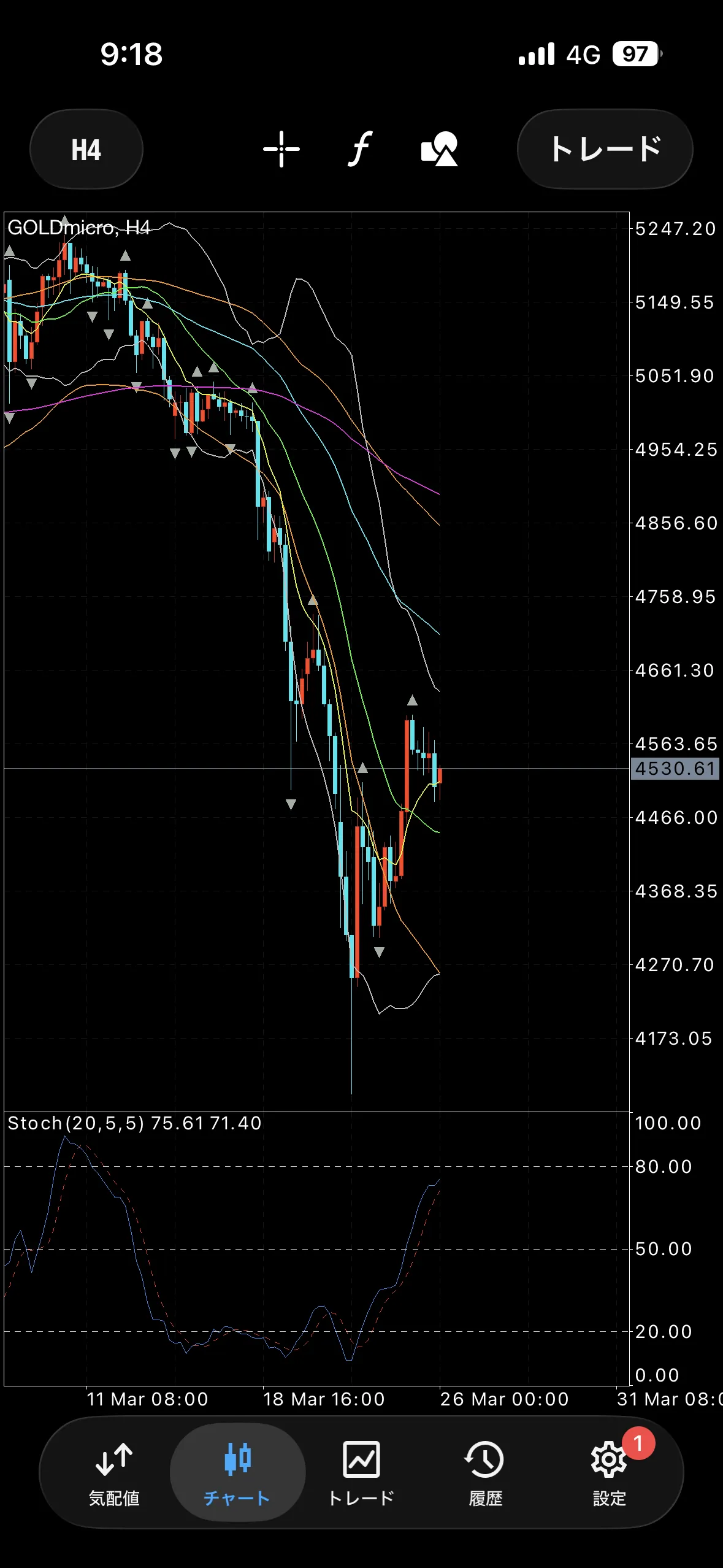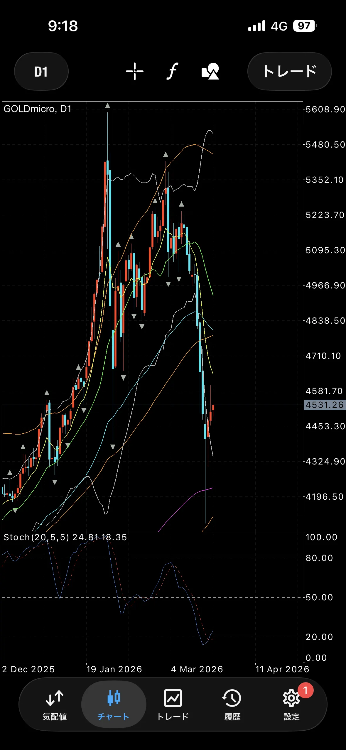 4時間2σと200MAが上から接近中のため、上にブレイクしても急反発は充分に考えられる。