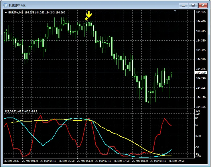 【RCIを極めて勝つ!!】トレンド転換 ユーロ円 5分足 mBDSRのサイン