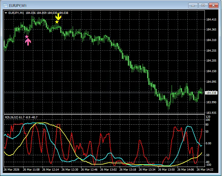 【RCIを極めて勝つ!!】トレンド転換 ユーロ円 1分足 mBDSRのサイン