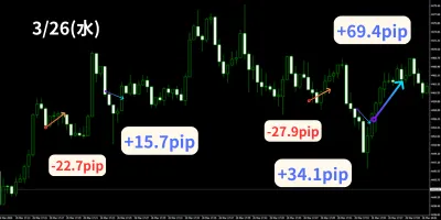 3月26日の「30秒足GOLDオートマチックFX」のトレード結果