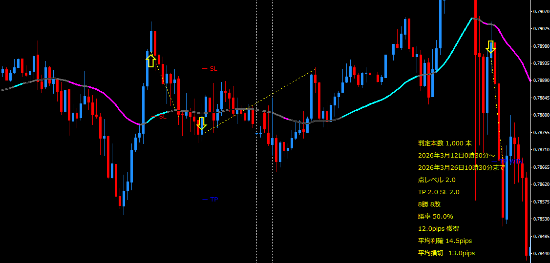 ラインから〇〇pips浮いたらエントリ―しない設定もあるので併用すると勝率も安定しそうです。