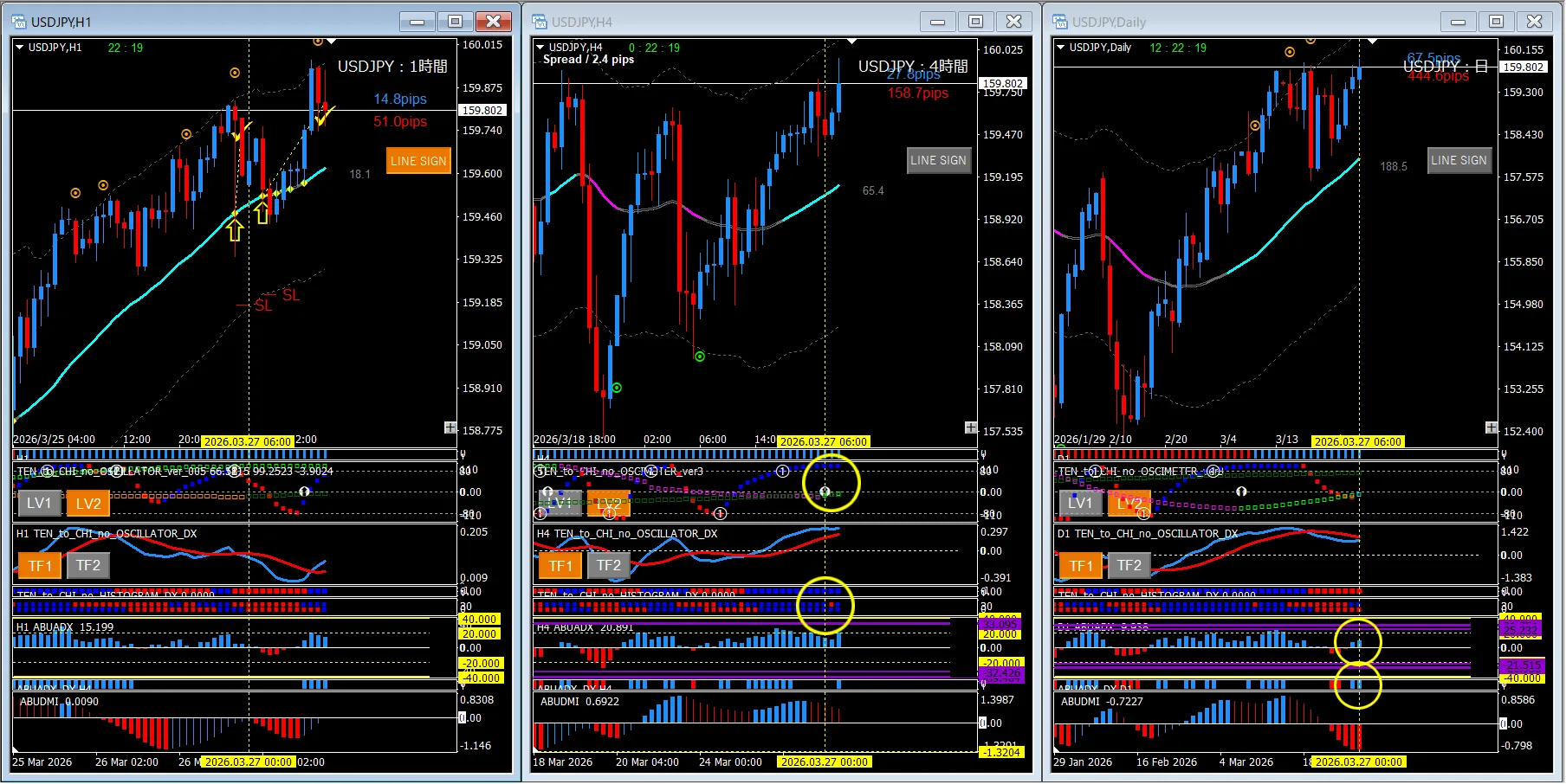 【2026年3月27日】天と地シリーズ3種×チャート検証(ドル円)