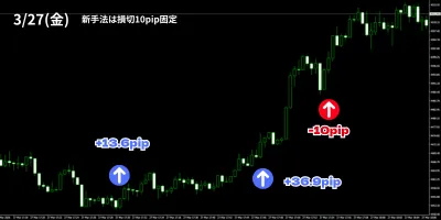 3月27日の「30秒足GOLDオートマチックFX」のトレード結果