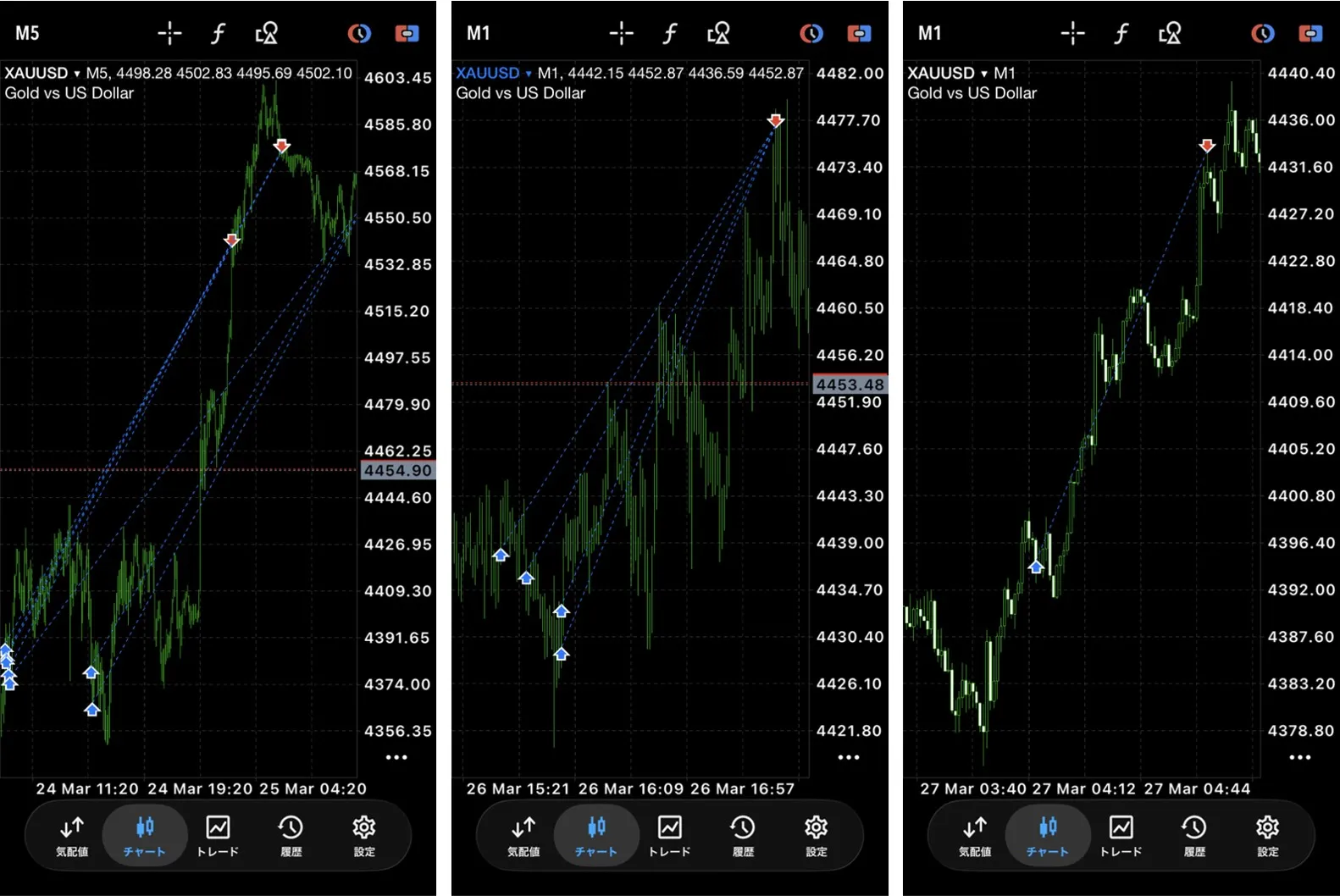 そのズレに気づけるかどうかで、同じXAUUSDでも見え方はかなり変わります。 今回の3日間は、その違いを自分でも改めて強く感じた場面でした。