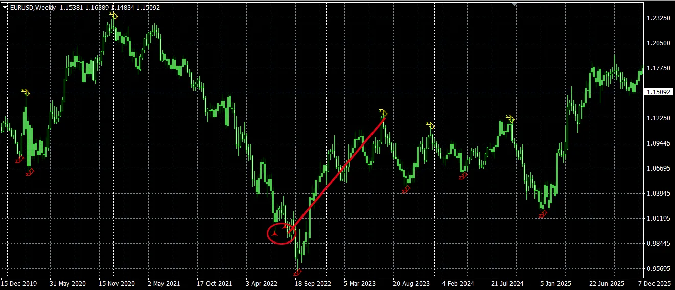 ユーロドルは2022年にパリティ割れを試したところで、綺麗にサインが出ています。