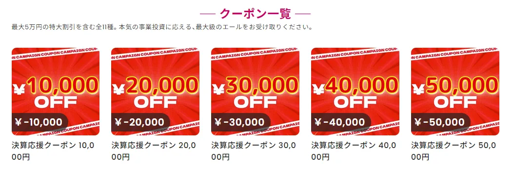 - クーポン金額が合っていない(3万円なのに5,000円クーポン等)
