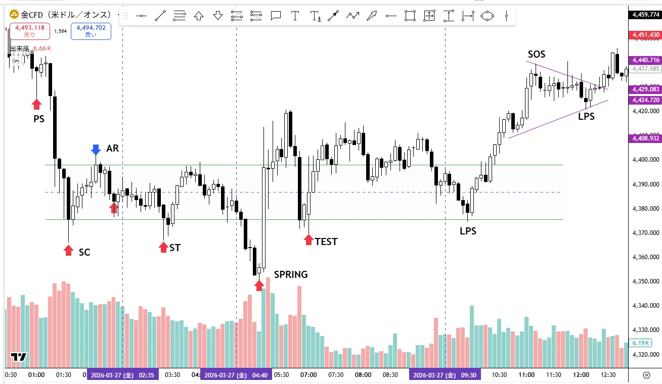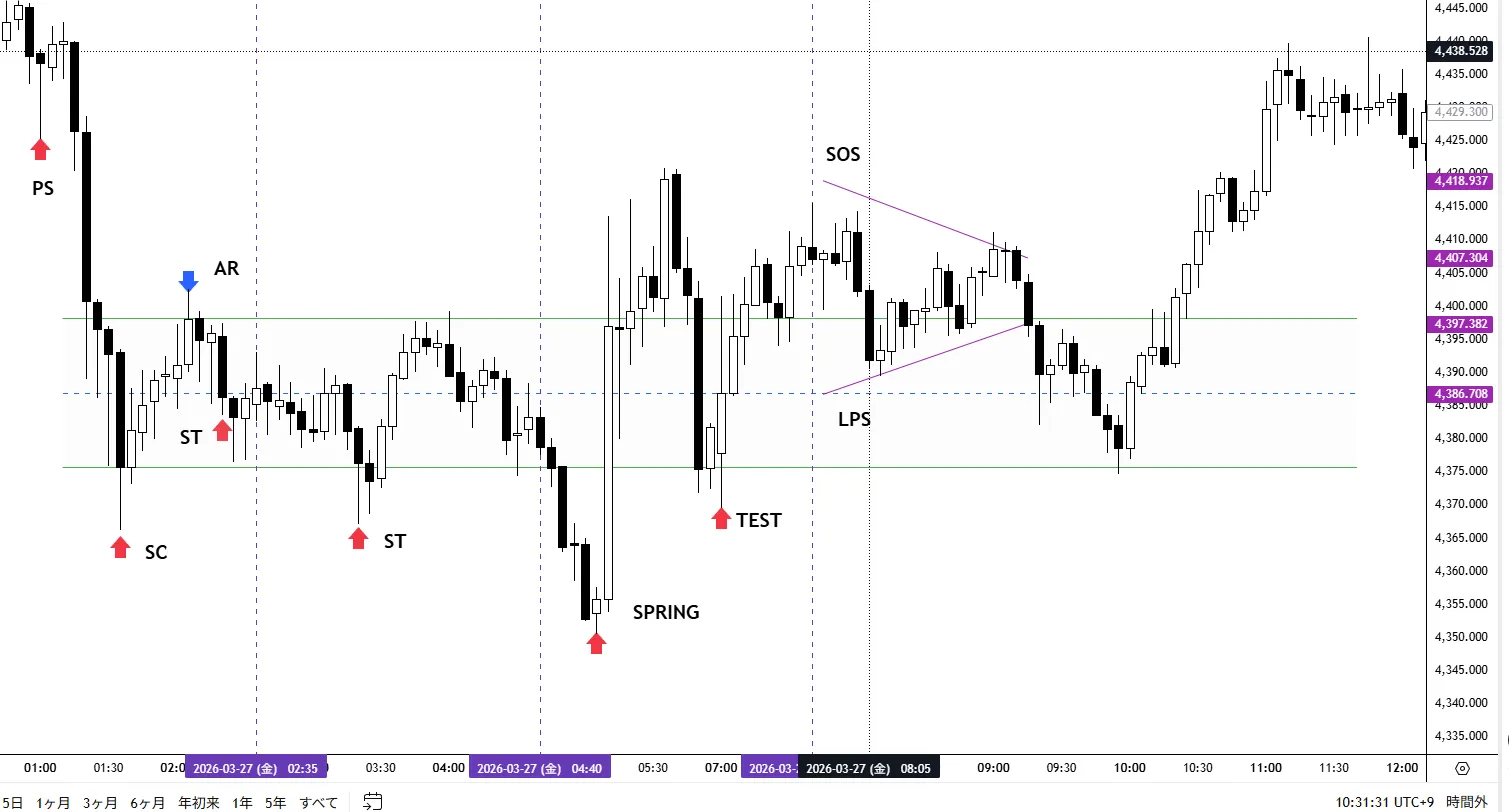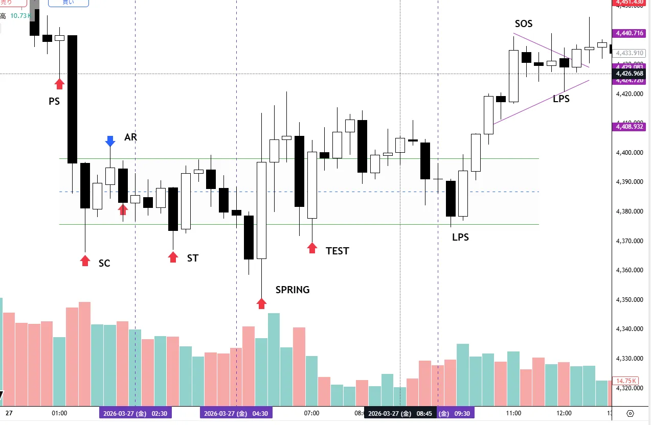 きれいに100%一致というわけにはいきませんがよく見られるスプリングの転換パターンです。
