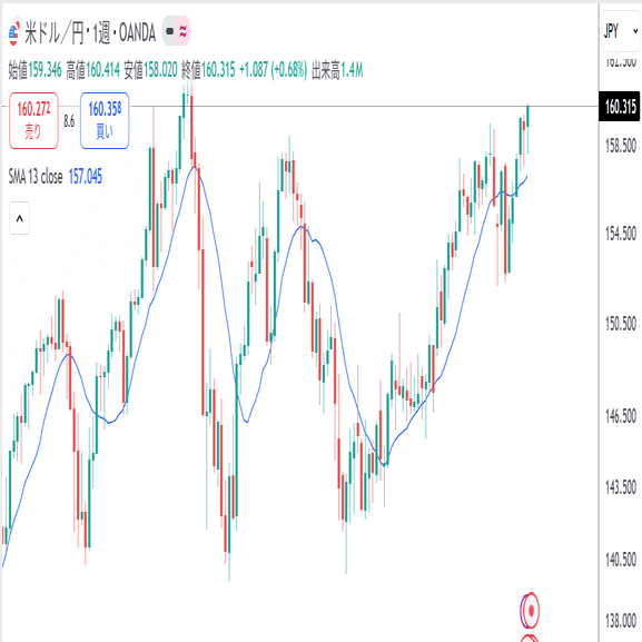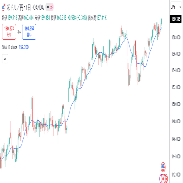ドル円160円台というのは、過去に財務省が口先介入・実弾介入を行った水準です。