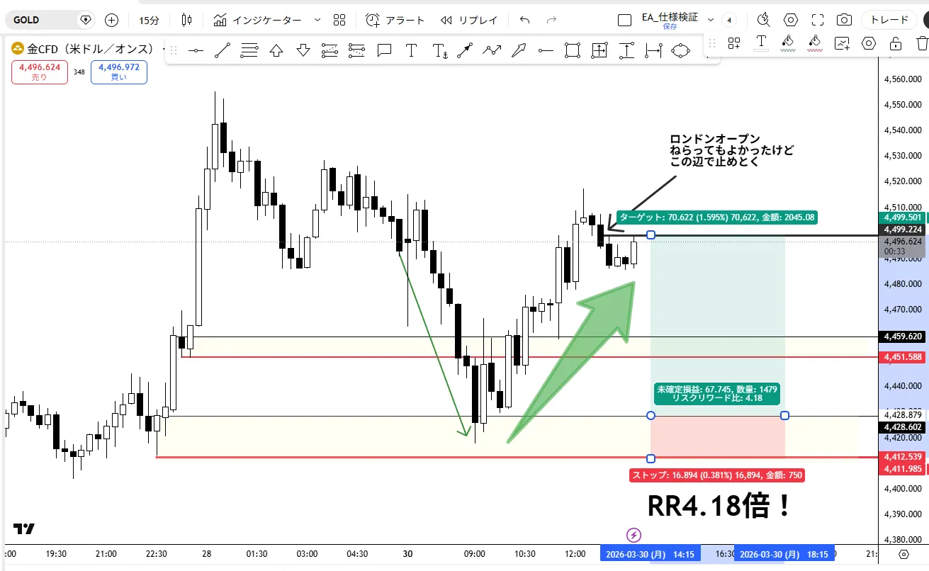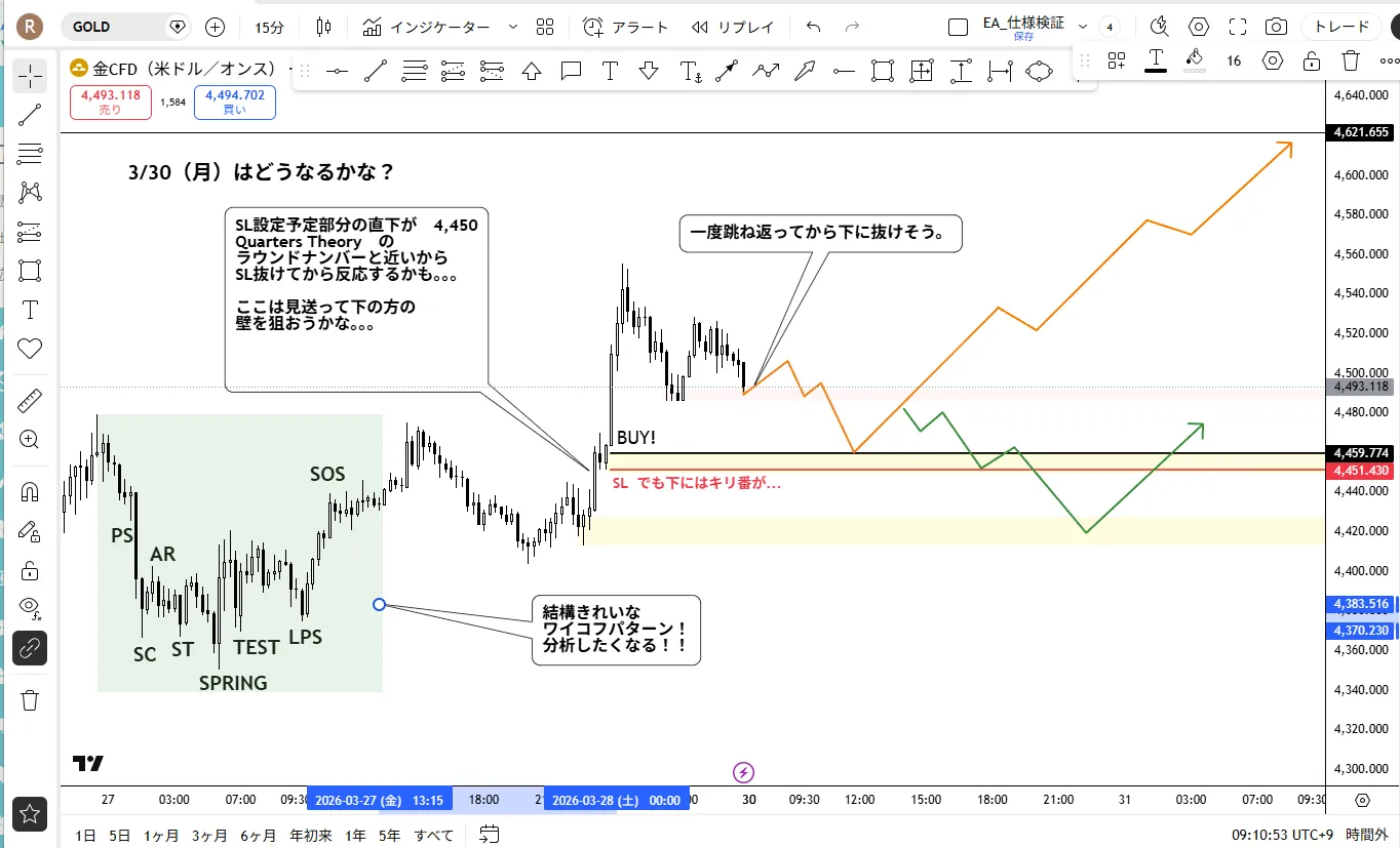 ラウンドナンバー(4450付近)で強力な上昇だったけど、