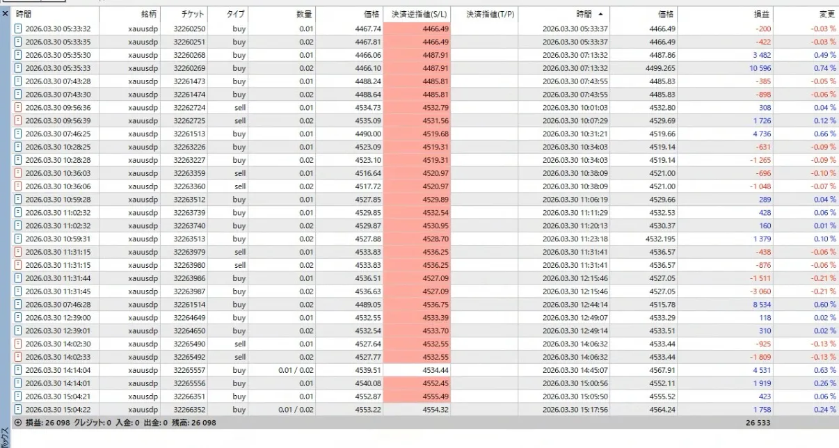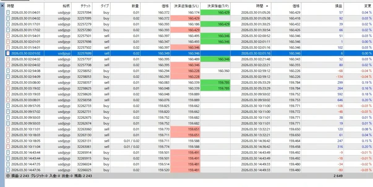 この期間は、ロジックの最終調整とEA化(TARGET_ENTRY)の開発を進めながら、実運用ベースでブラッシュアップしている段階です。