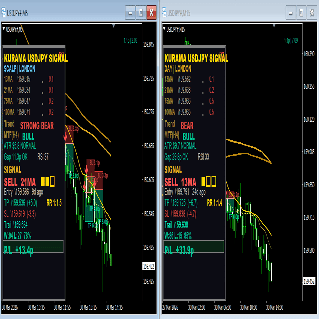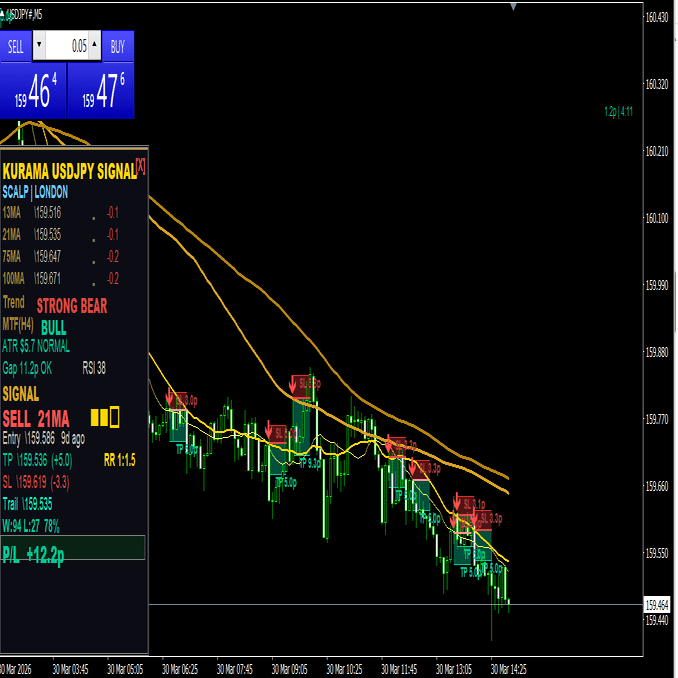 ゴールド版で実証された7つのフィルターシステムとMA手法をベースに、ドル円の値動きに完全特化してチューニングしたのが、KURAMA USDJPY SIGNALだ。