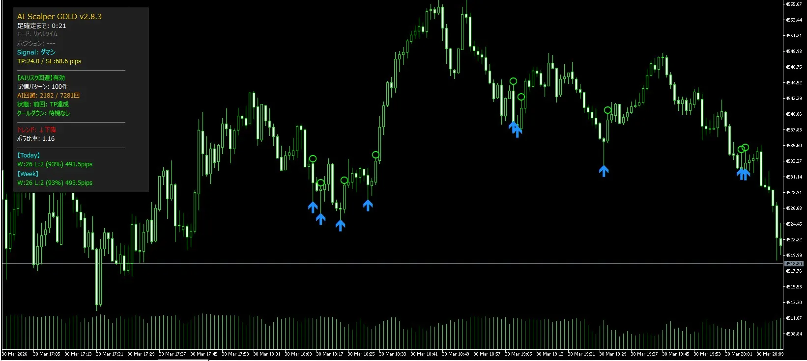 AI Scalper GOLDで勝率が93%がでました!