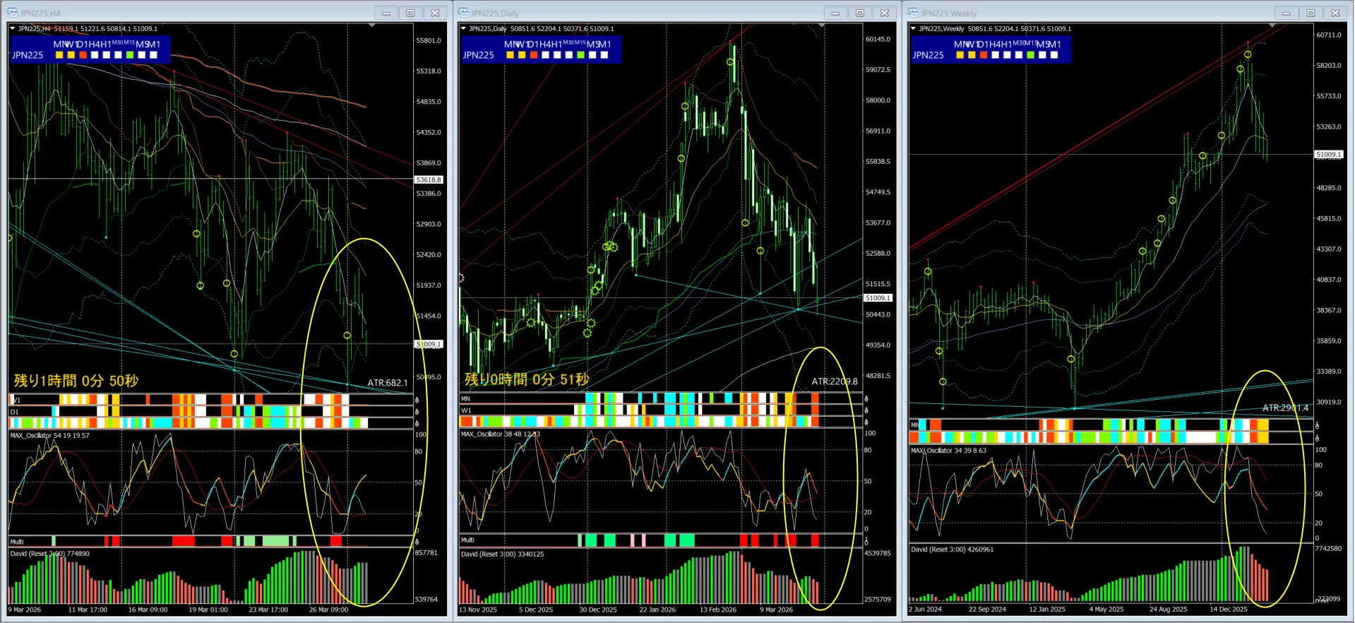 日足:MAXオシレーター:シンクロバンド 「強い下落」