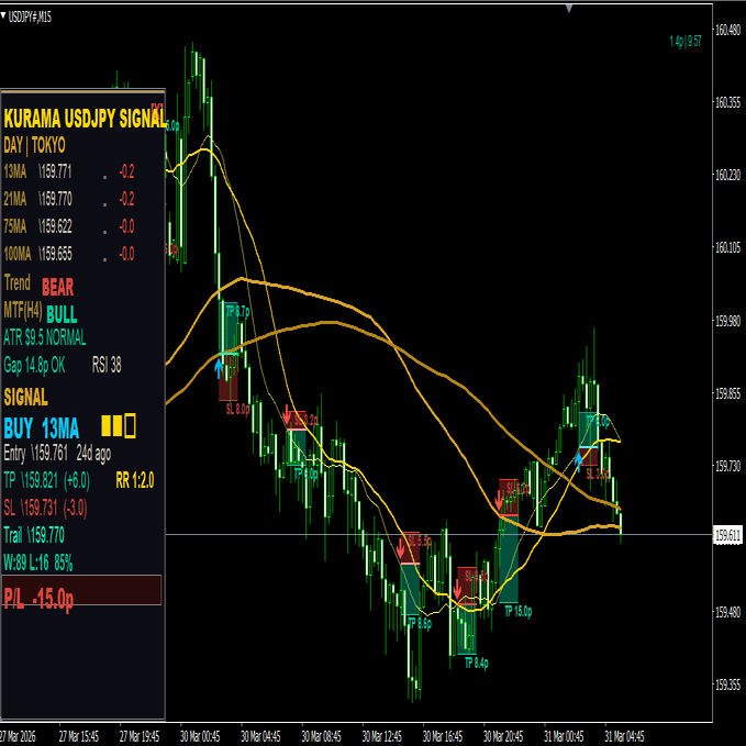 俺が開発した**KURAMA USDJPY SIGNAL(KUS)**は、まさにこの仕組みを搭載したドル円専用インジケーターだ。