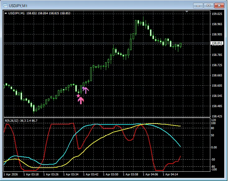 百戦錬磨 mBDSR(RCI2本フィルター)のサインとR1R2S2のサインの両方を活用する(113) ドル円 USDJPY 1分足