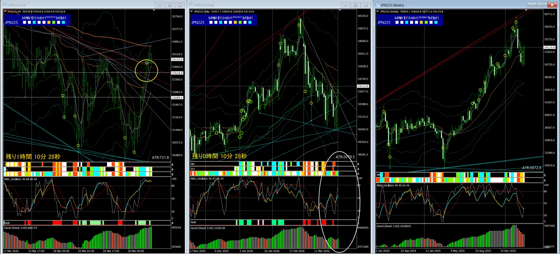 オリジナルインジケーターによる、現状の分析コメントであり、