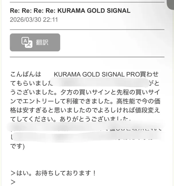 【購入者の声】KURAMA GOLD SIGNAL PROで初日から利確報告が届いています