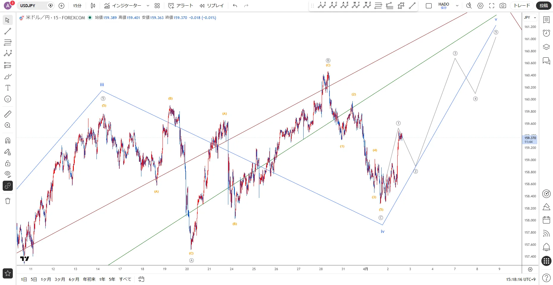 【ドル円】反転上昇のターン / 4月2日(木)のイベントエリオット波動分析
