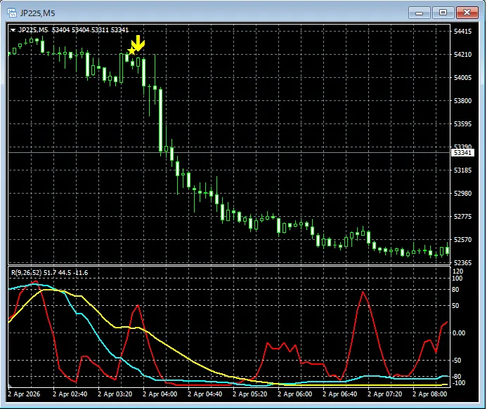 【RCIを極めて勝つ!!】日経平均 JP225 5分足 mBDSRのサイン