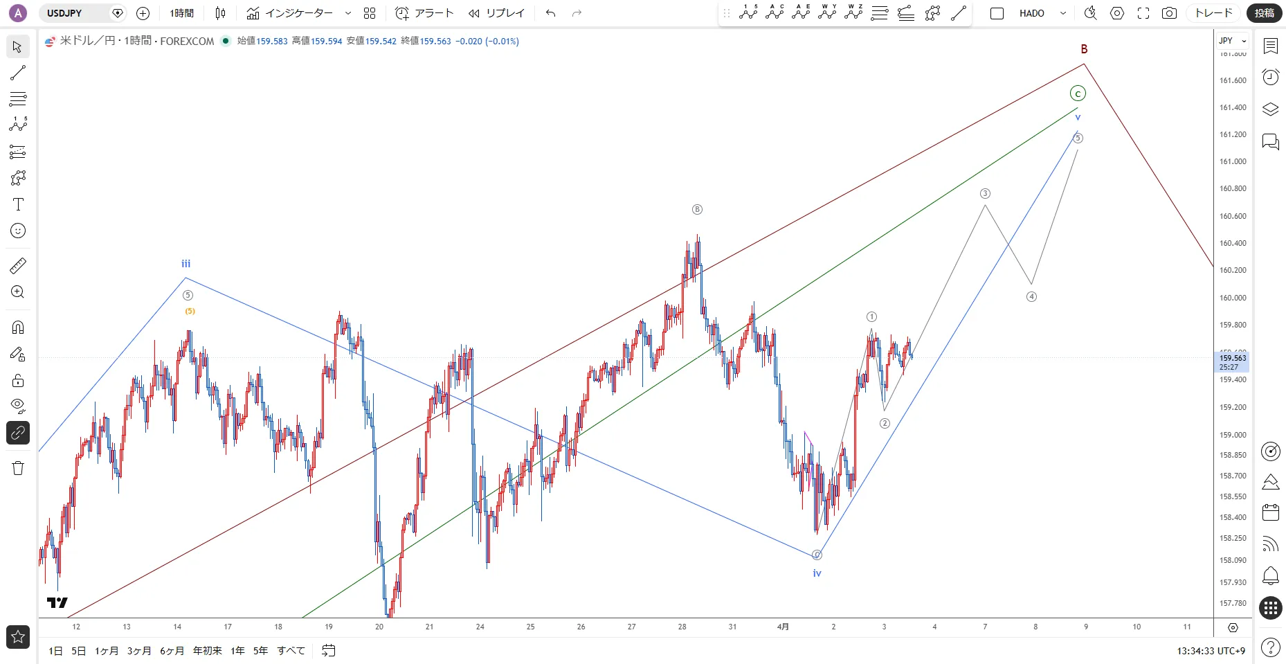 【ドル円】グッドフライデーで流動性低下に注意 / 4月3日(金)のイベントエリオット波動分析