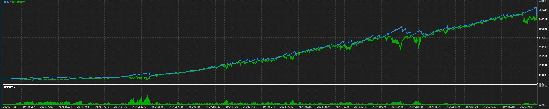 このうち、逆張りの割合を増やしてみた結果が以下の通り。