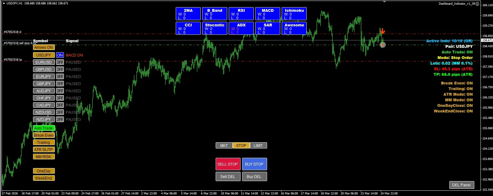 『Dashboard Indicator Pro 〜10種の王道ロジック完全監視&勝敗可視化・自動売買システム〜』 です。