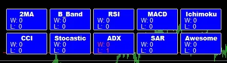 2MA / ボリンジャーバンド / RSI / MACD / 一目均衡表 / CCI / ストキャスティクス / ADX / パラボリックSAR / Awesome Oscillator
