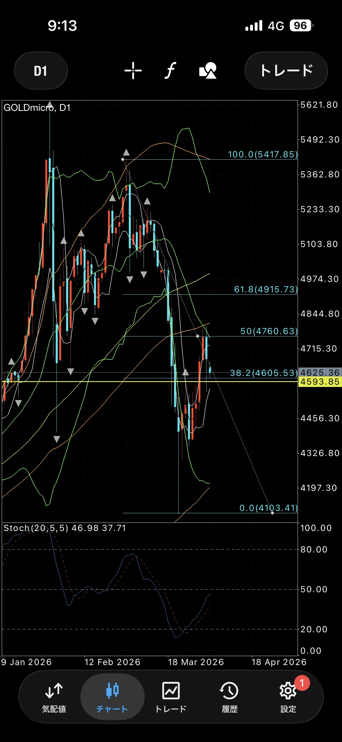 4593反発買い(4時間上昇ダウが崩れるまで)