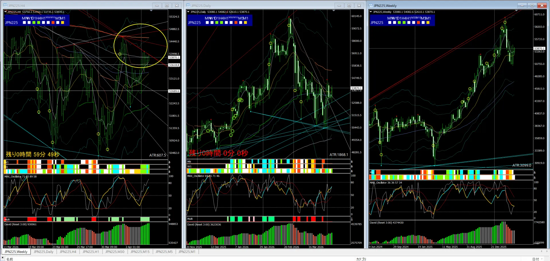 日足:MAXオシレーター:シンクロバンド 「弱い上昇」