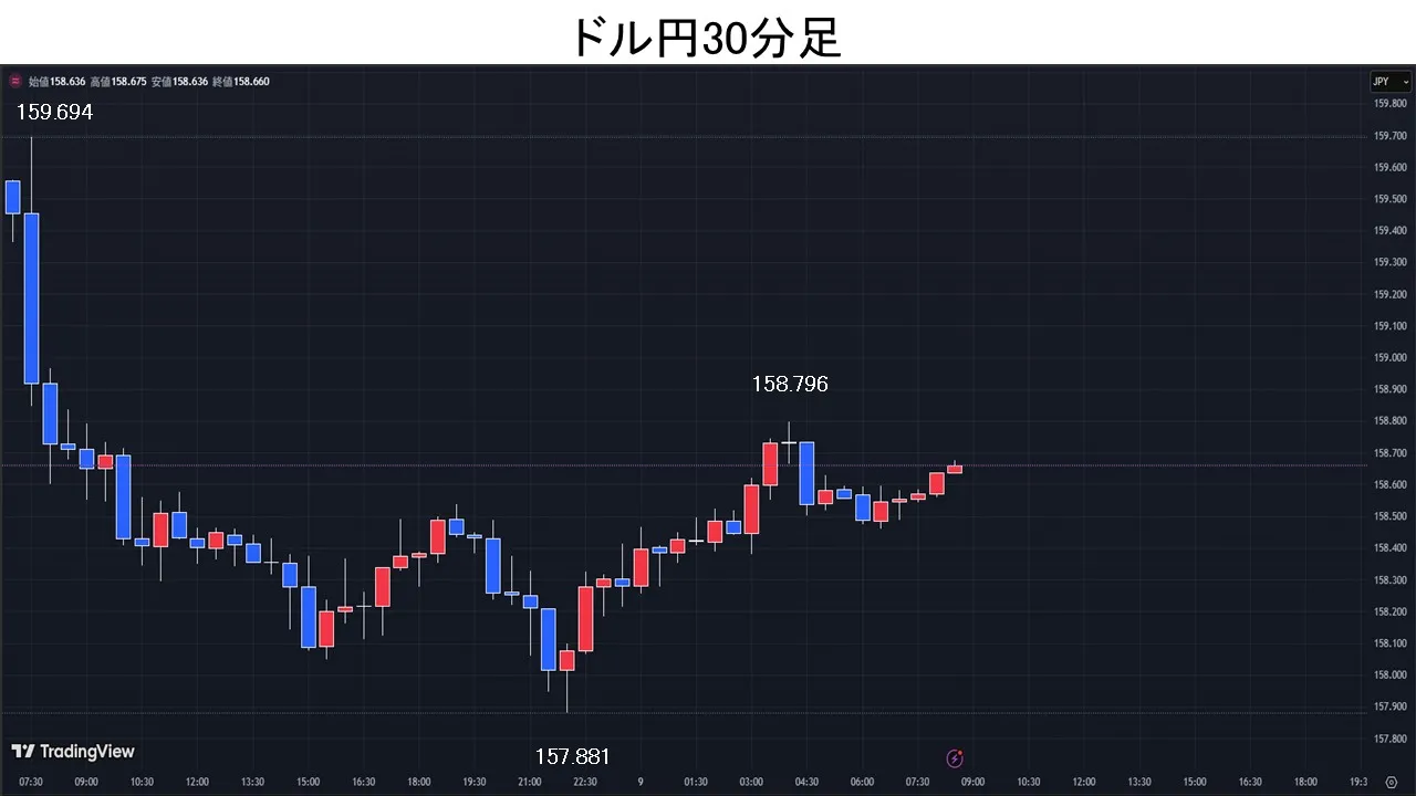 「有事のドル買い」の巻き戻し先行。ドル円は一時157.88円まで下落。
