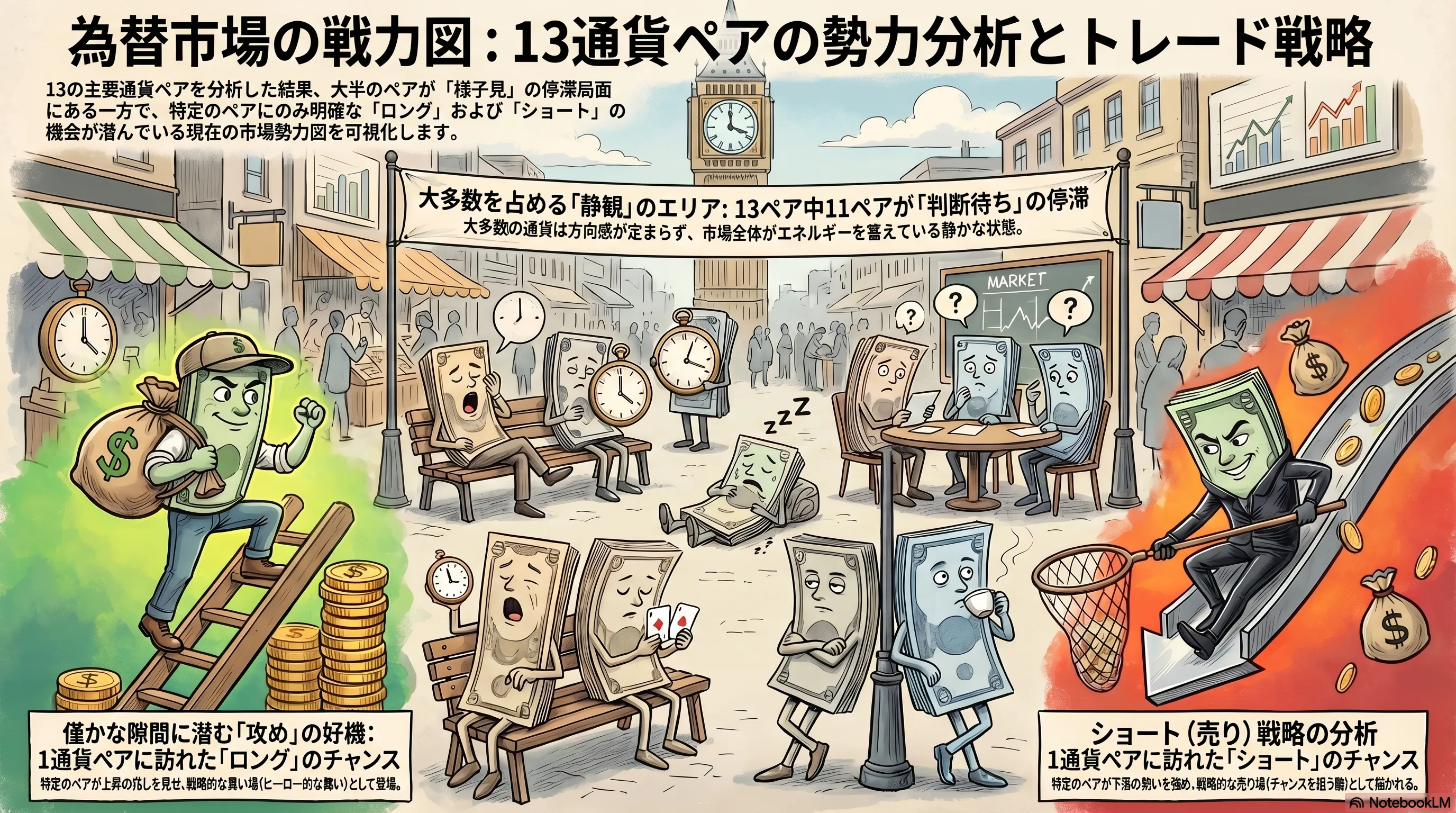 一方でEUR/USDのようなねじれも残っており、全体としては「選別して狙う日」です。