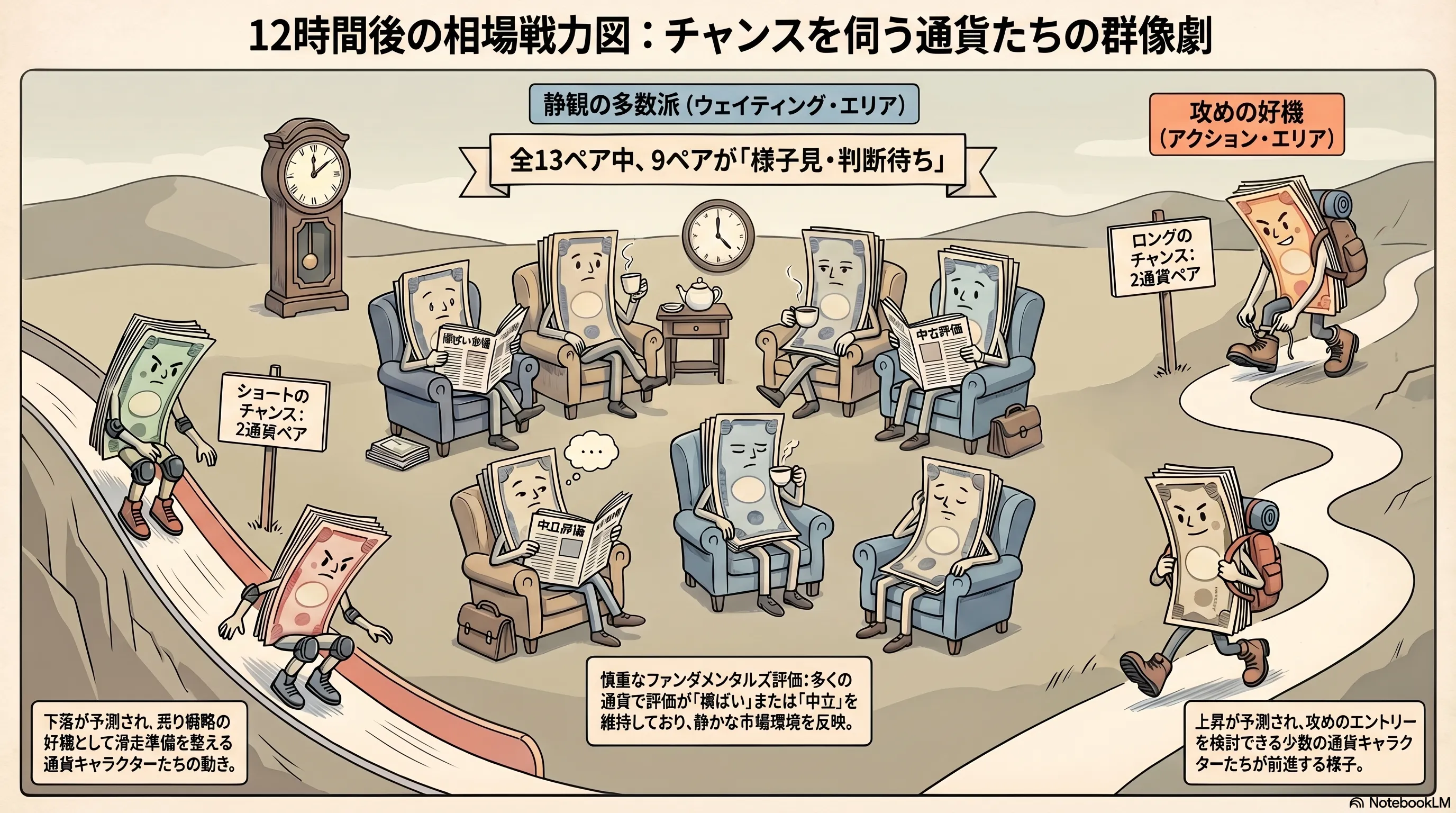 【4/13 夕】AI×ファンダ統合分析|13通貨ペア戦略(本日の予測)