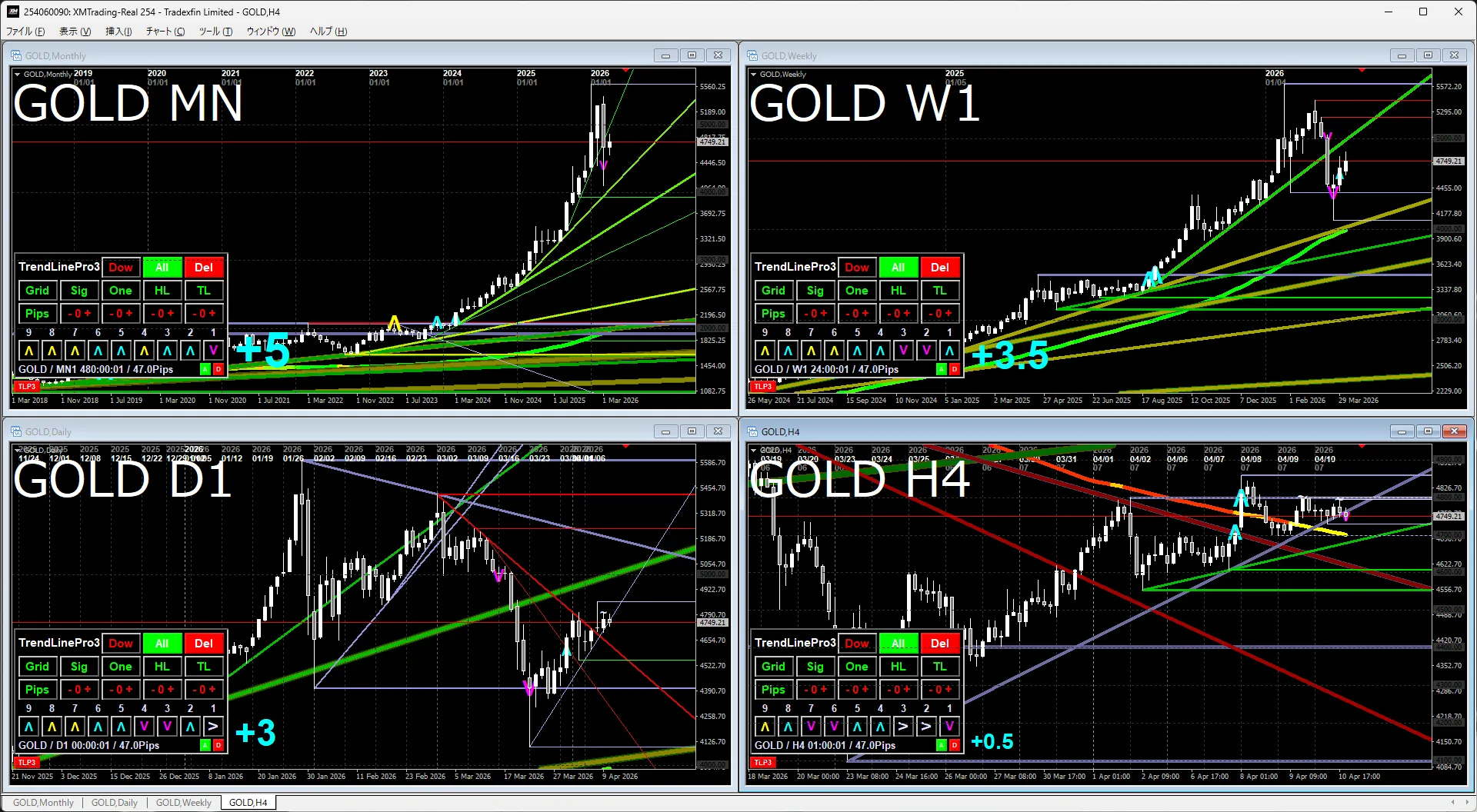 月足・週足は、通貨価値の下落に注目が集まり、ゴールドは依然として買い一択といった基調ですが、綺麗に引かれたトレンドラインを割り込み、調整段階に入った様です。