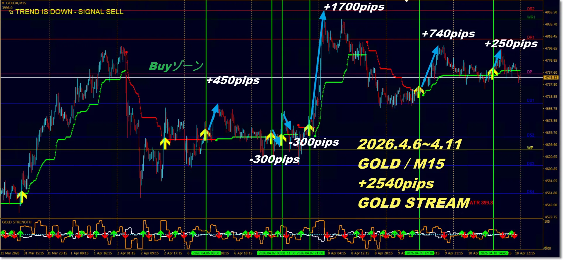 +2540pips【週次トレード検証】GOLDデイトレ特化型 「GOLD STREAM」2026.4.6~4.11
