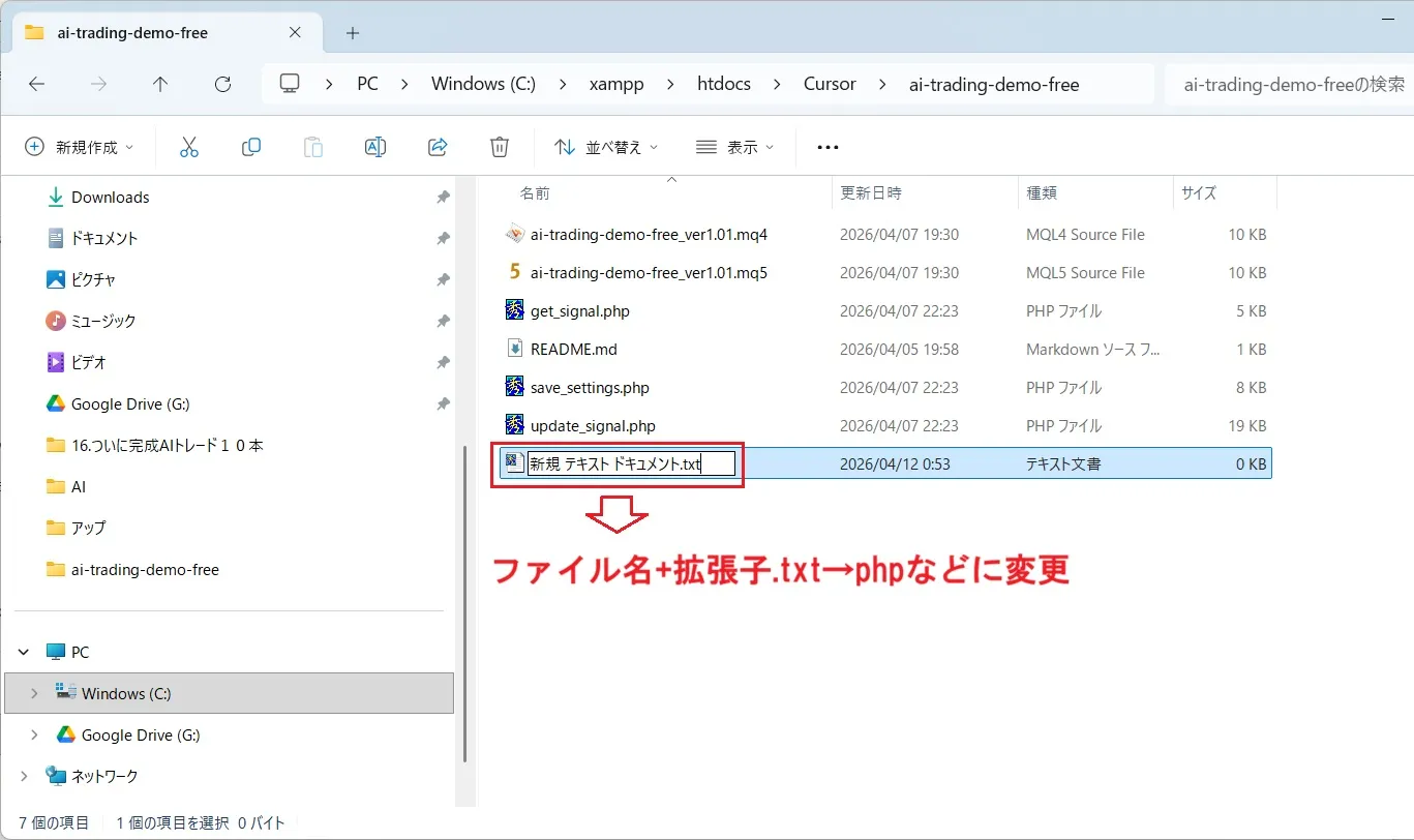 設定手順②PCにファイルを保存(拡張子を.phpで保存)