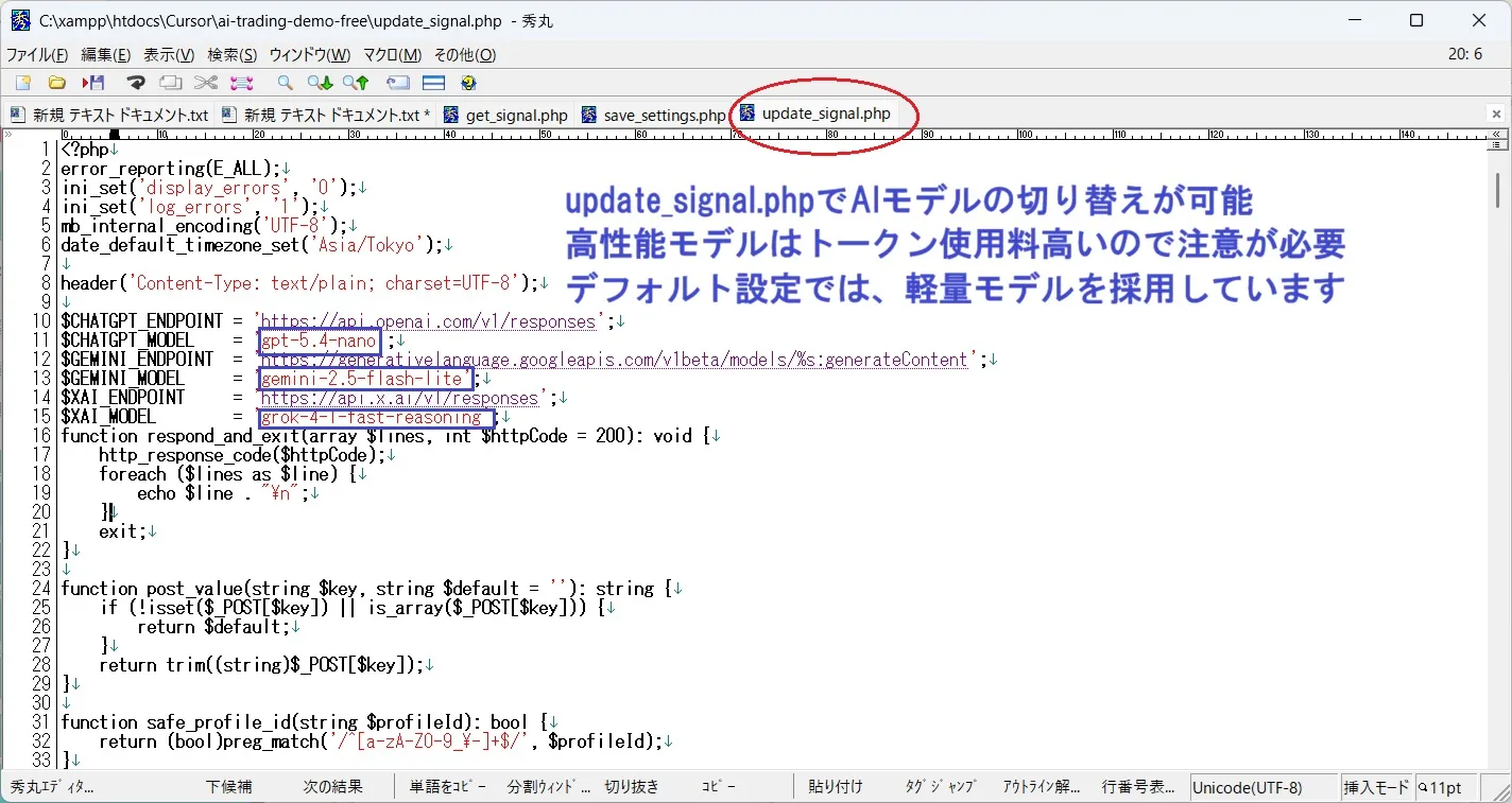 設定手順①AIモデルを変更する場合は、update_signal.phpで設定する。