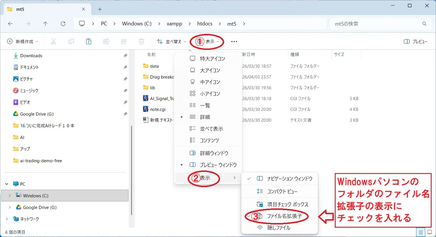 パソコンに保存する際に、拡張子が変更できない場合、以下の手順をお試しください。